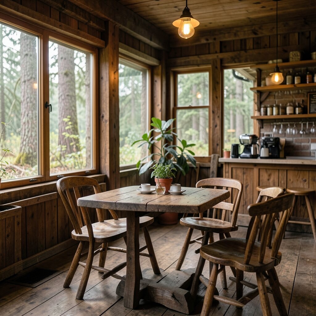 Imagine wooden beams, distressed wood, and mason jars. It’s a warm, inviting vibe that feels like a cozy country retreat.