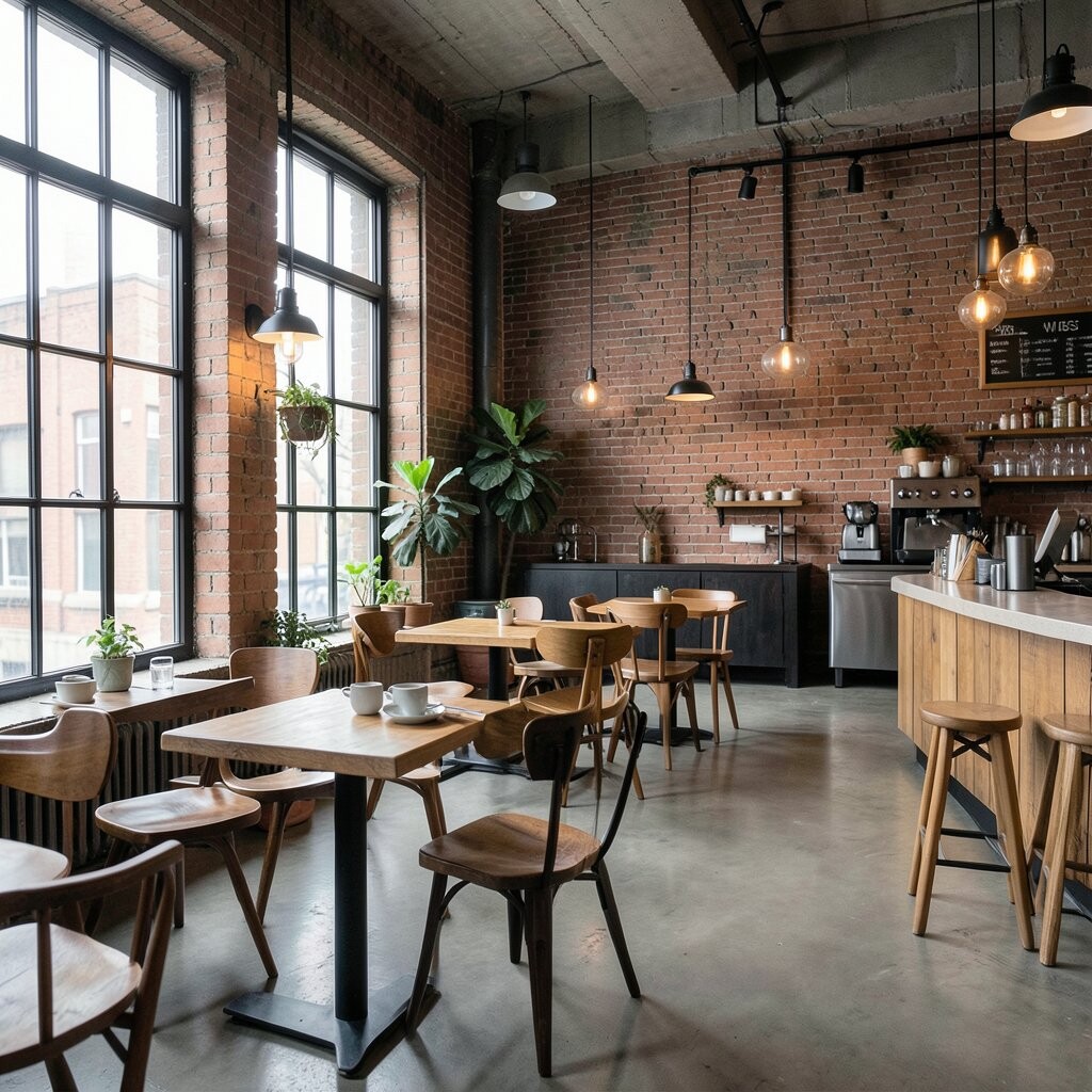 Think exposed brick walls, metal fixtures, and raw textures. It’s edgy and modern, yet inviting.
