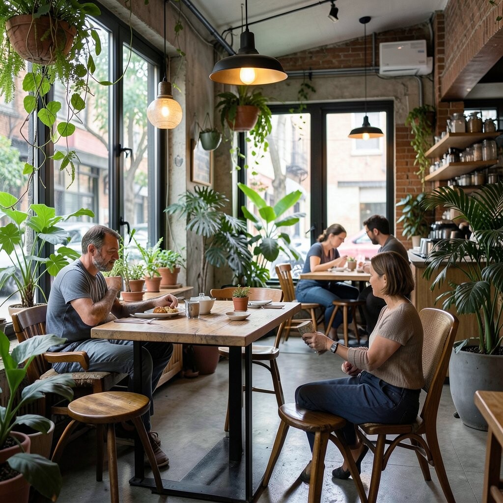Imagine a jungle in the city with lots of plants and greenery. It’s all about nature inside.