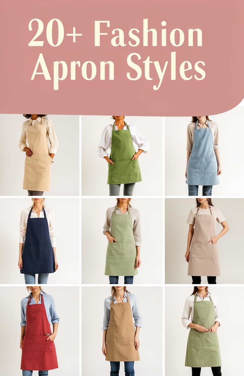 Fashion aprons can be styled in 21 unique ways to add flair and personality to your cooking attire, inviting you to elevate your kitchen look.