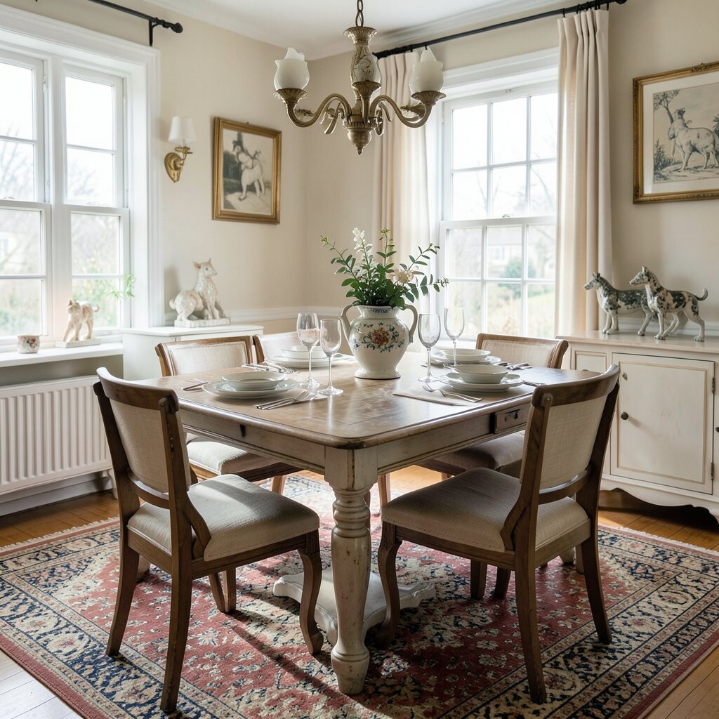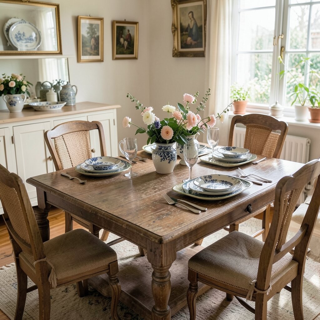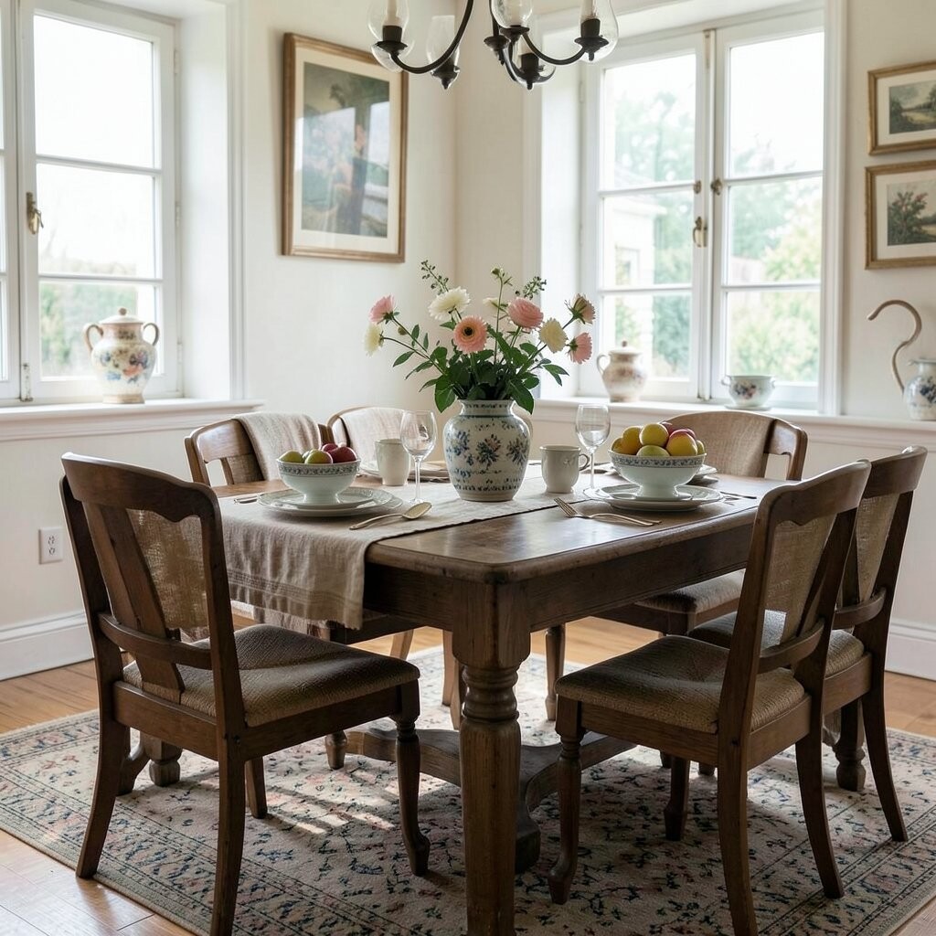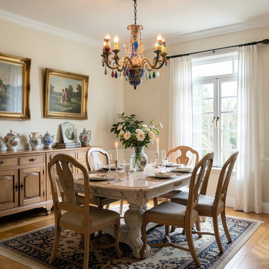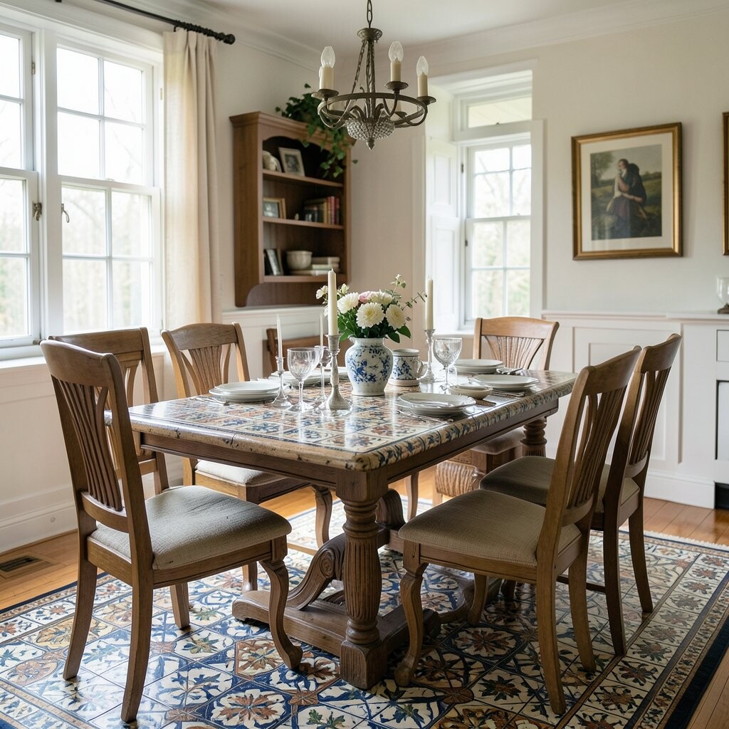 A table with a vintage ceramic tile top can become the focal point of your dining room. The tiles often feature vibrant colors and patterns, reminiscent of Mediterranean styles. It’s a great way to add color without overwhelming the space.