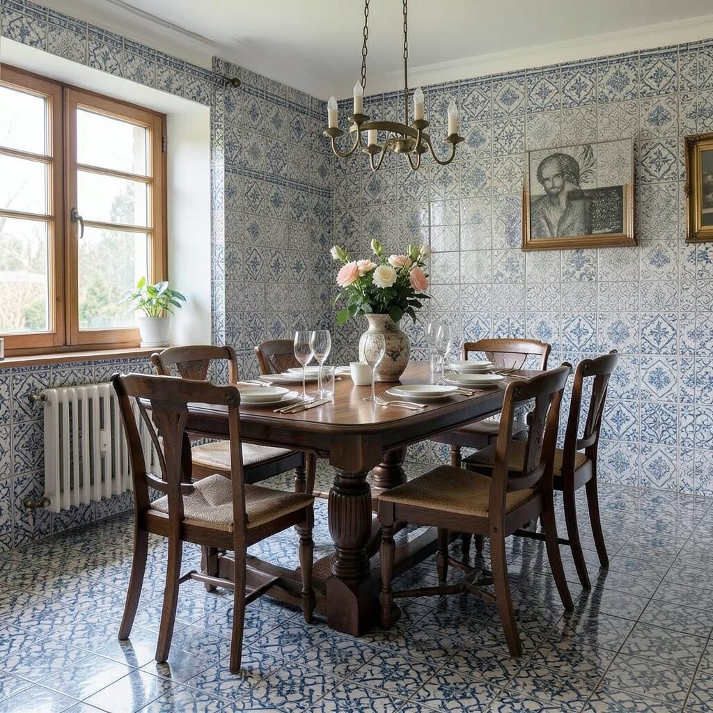 Patterned ceramic tiles can be used as a flooring option or an accent wall in your dining room. The designs can range from simple to intricate, allowing you to express your style. They add visual interest and can be quite striking.