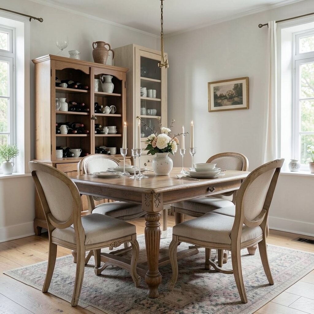 Swapping out regular cabinet knobs for antique ceramic ones can give your dining room a quick vintage update. The knobs come in a variety of designs and colors, adding subtle charm to furniture.