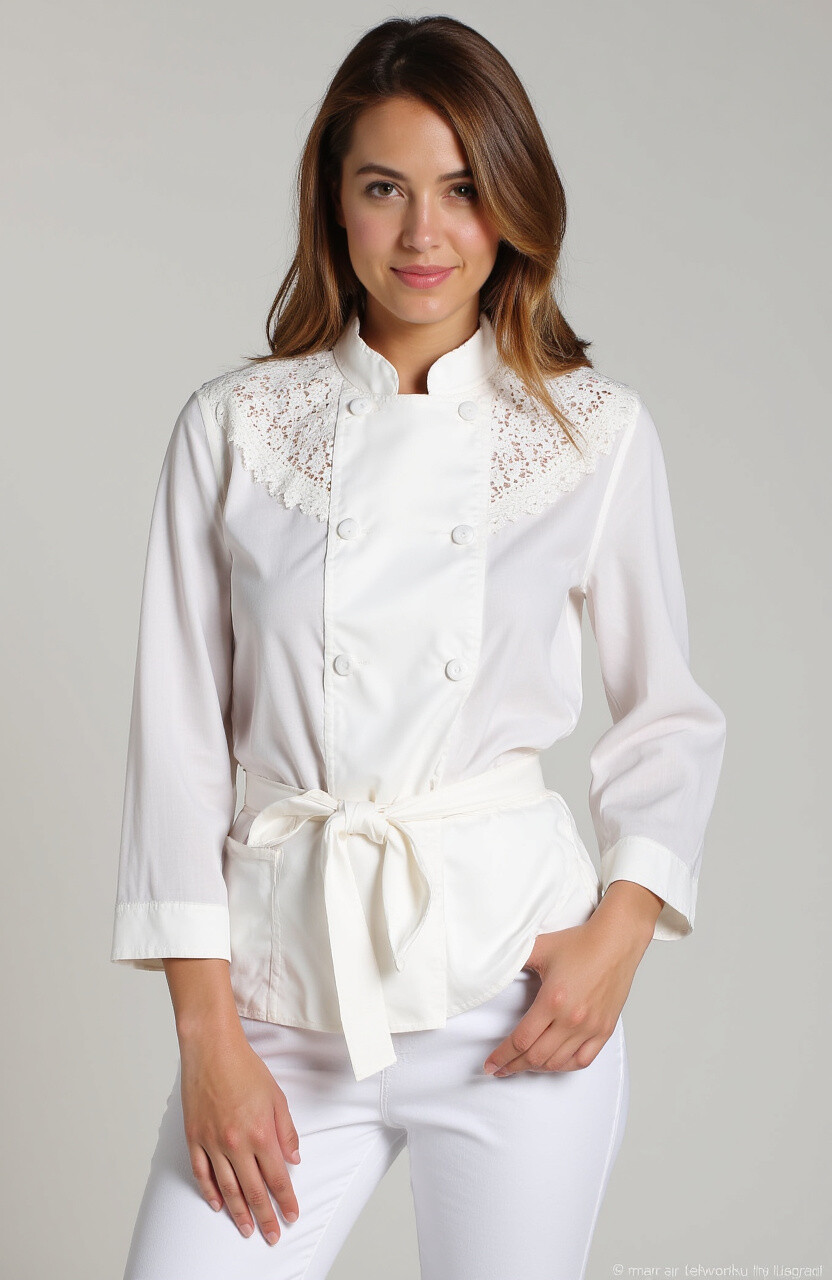 Lace details add a touch of romance and femininity to your chef blouse. They are delicate and beautiful, perfect for creating a soft, elegant look. Lace can make you feel like you’re cooking in a French countryside kitchen.