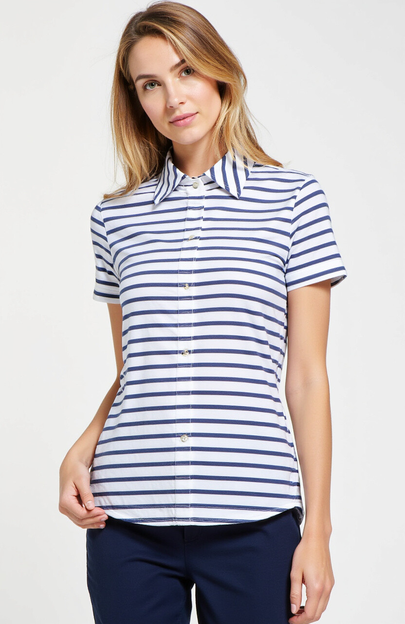 Pair it with navy pants for a complete look. Nautical styles are trending, making you both stylish and contemporary. Prices are mid-range, often between $30 and $40.