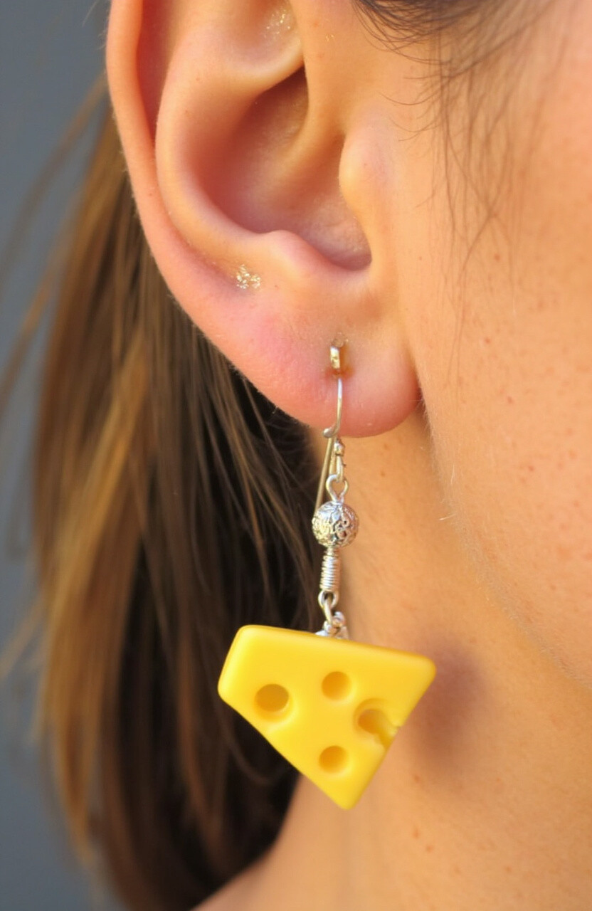 Cheese lovers, these earrings are for you! With intricate details, they capture the essence of your favorite dairy delight.