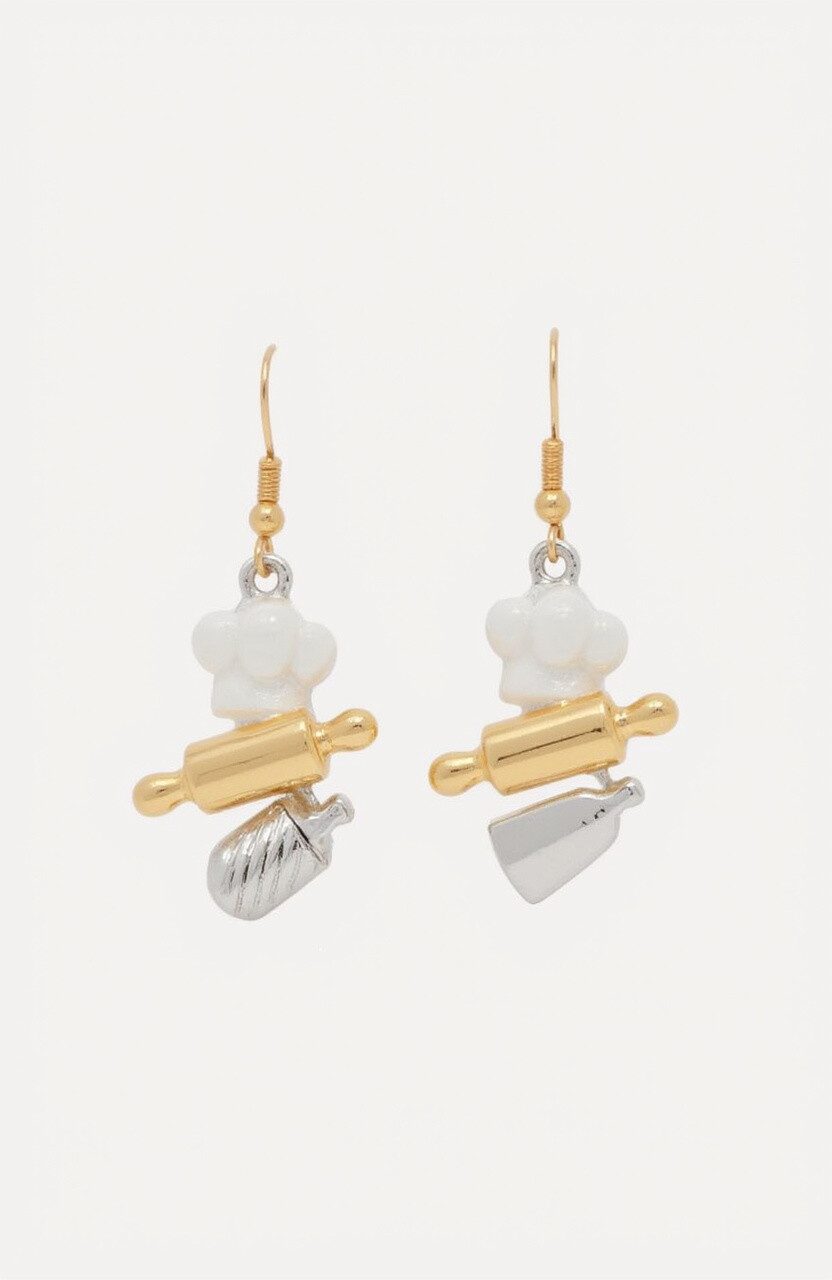 If you love baking, these pastry chef earrings are for you. Featuring a tiny rolling pin and pastry cutter, they’re a baker’s dream.