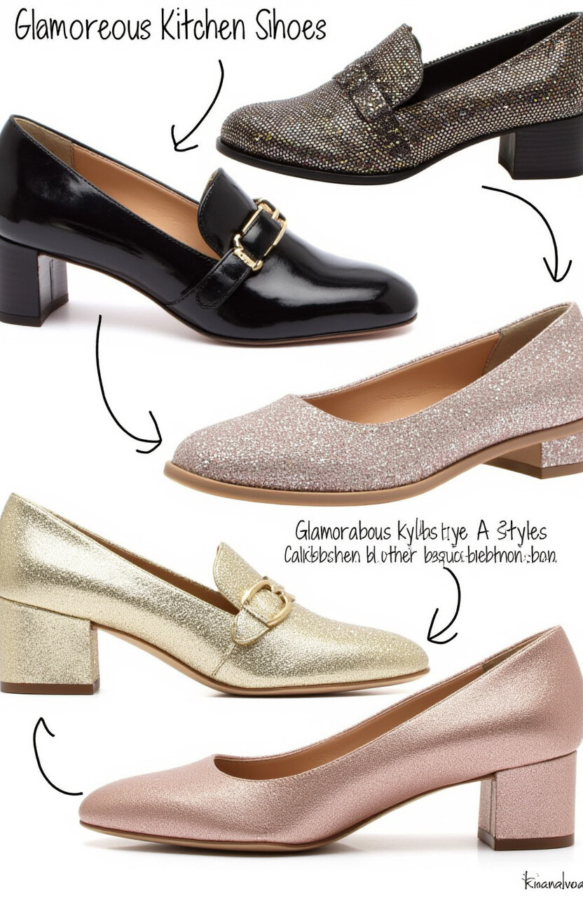 Comfort meets style with glamorous kitchen shoes. Picture shoes that are both supportive and dazzling, with metallic finishes or unique patterns.