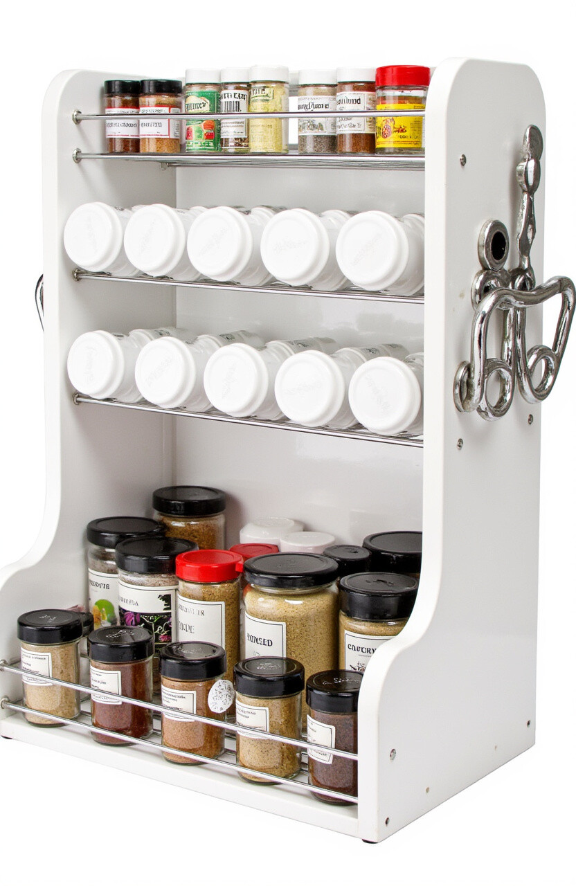 Spice racks can be both functional and fashionable. Imagine a sleek rack with clear jars and labeled lids for easy access.