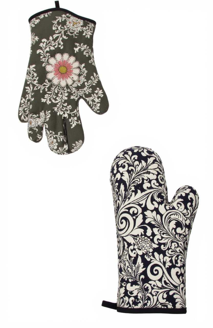 Oven mitts don’t have to be plain and boring. Picture mitts with bold patterns or elegant embroidery.
