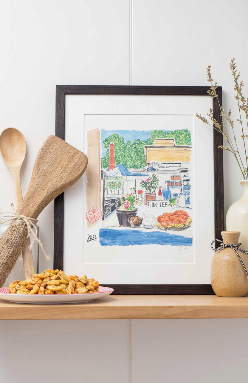 Wall art can bring life to your kitchen. Picture a colorful painting or a quirky sign that makes you smile every time you see it.