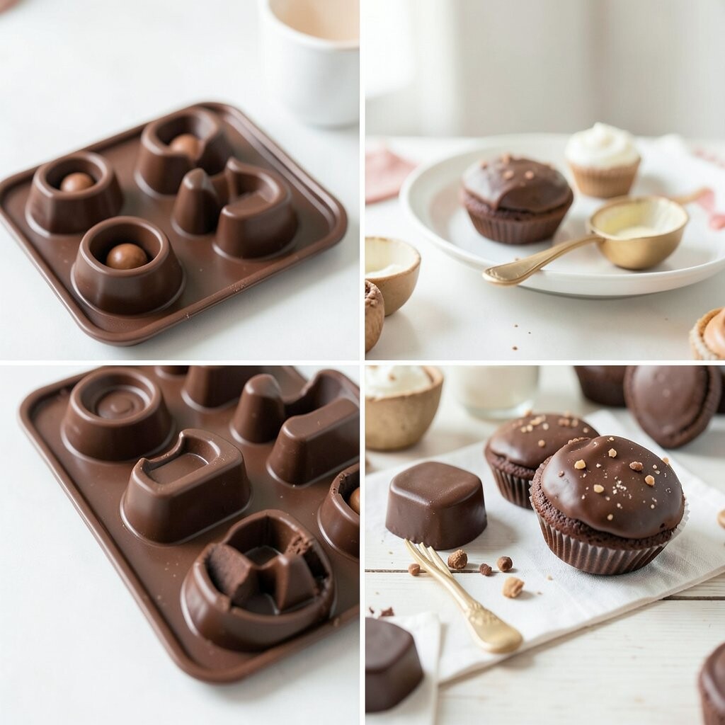Chocolate molds designed as cupcake toppers can elevate your baking game. They’re small, detailed, and charming.