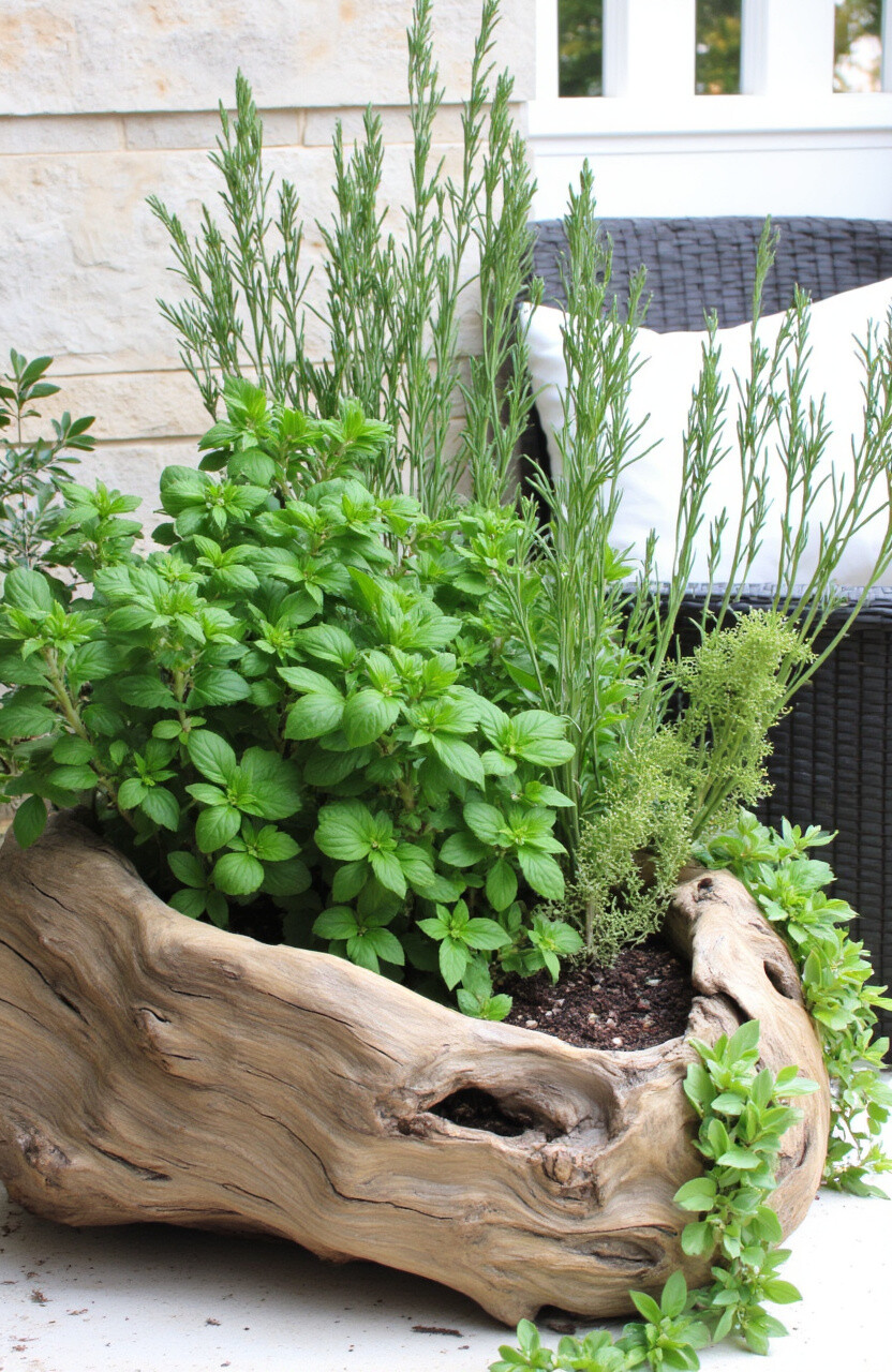 Growing herbs is affordable and rewarding. Basil, mint, and rosemary are easy to maintain. Use driftwood planters for a coastal touch.