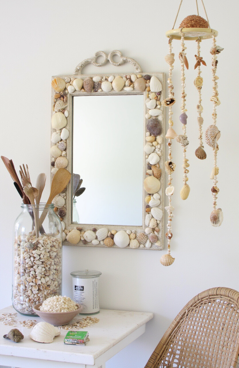 Seashells bring a touch of whimsy and magic. Fill glass jars with them or glue them around mirror frames. They remind you of beachcombing adventures.