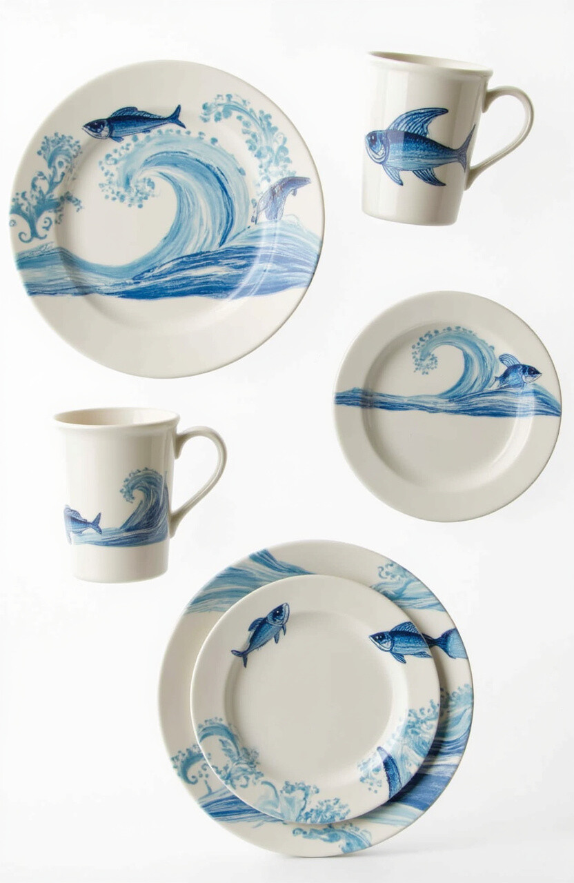 Plates and cups with fish or waves make mealtime fun. They’re a simple way to bring the ocean to your table.