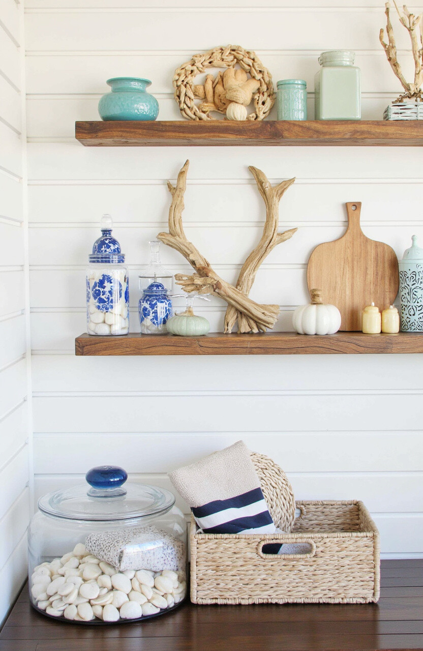 Seashells are inexpensive and can be picked up on your next beach trip. They add texture and interest to your kitchen. Consider making seashell wind chimes for a musical touch.