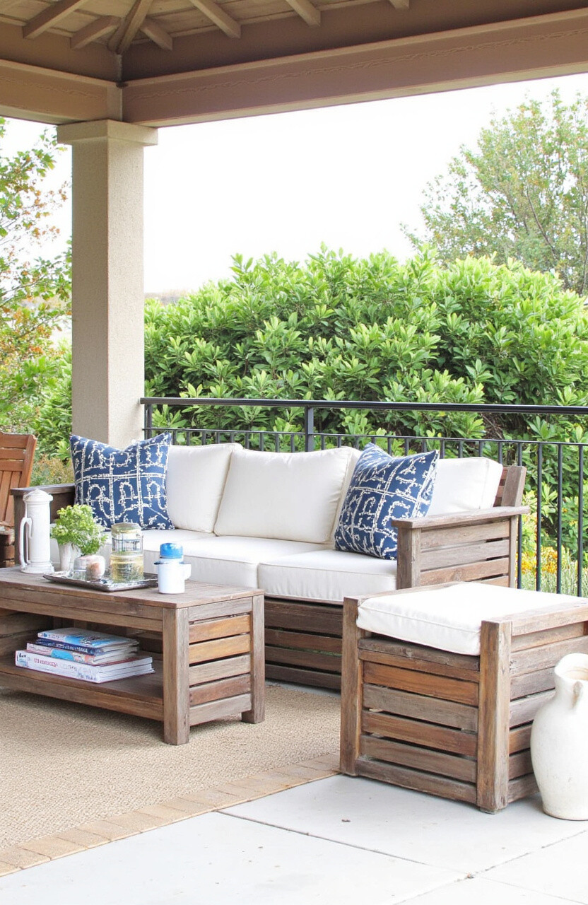 Wicker is moderately priced and available in many styles. Add throw pillows for a splash of color. Ensure it’s treated for outdoor use to prevent wear.