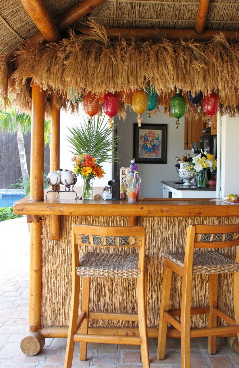 A tiki bar is perfect for entertaining. It brings a tropical vibe and makes your kitchen the go-to hangout spot.