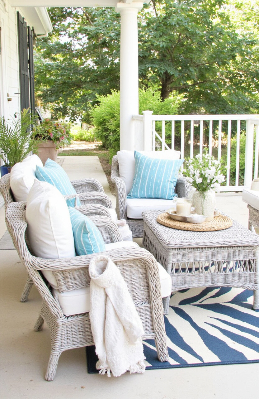 Wicker furniture is light and airy, perfect for a beachy feel. It’s comfortable and easy to move around.