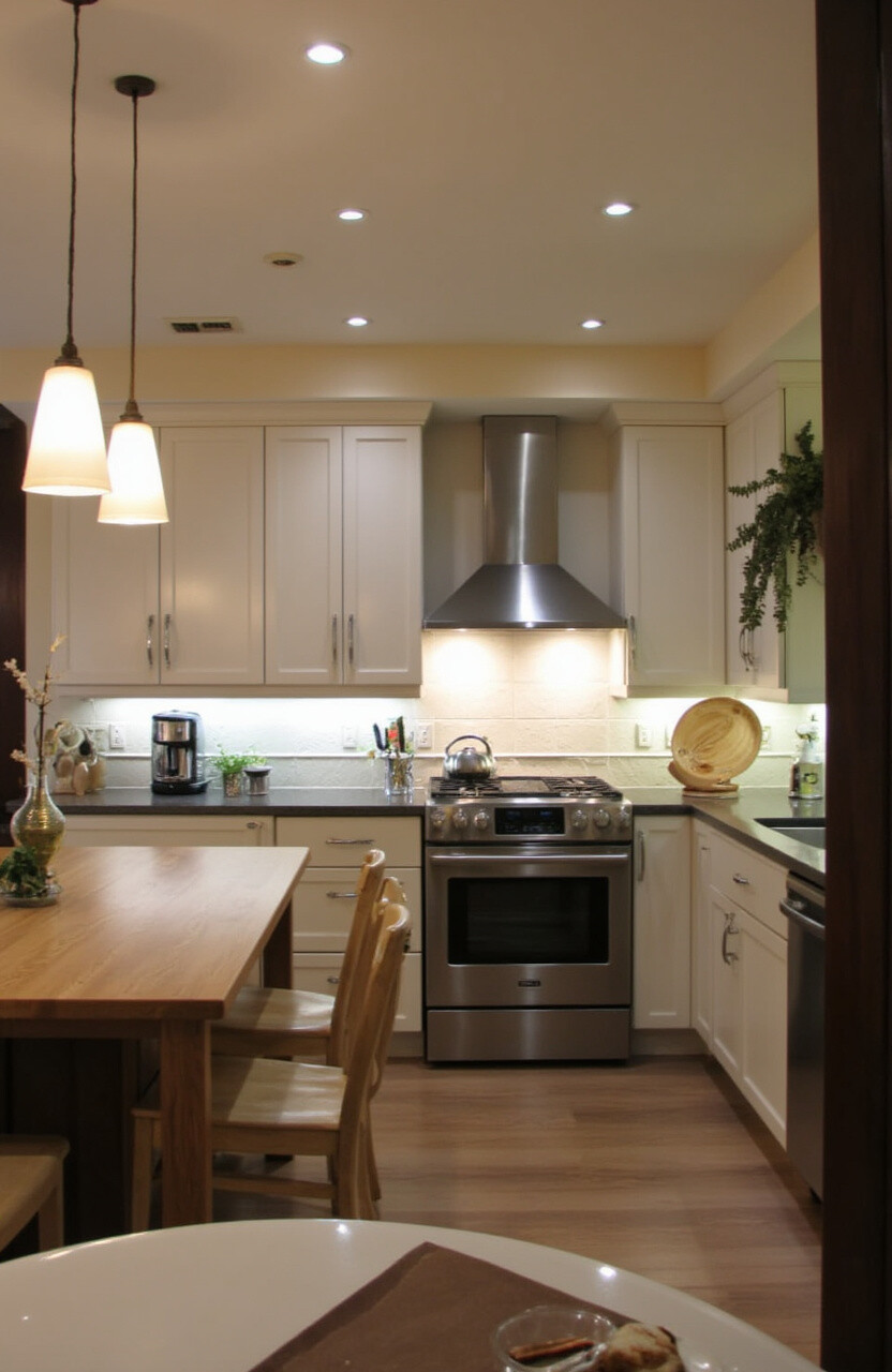 Under-cabinet lighting brightens up dark corners and adds warmth to your kitchen. It highlights your workspace and makes cooking more enjoyable.