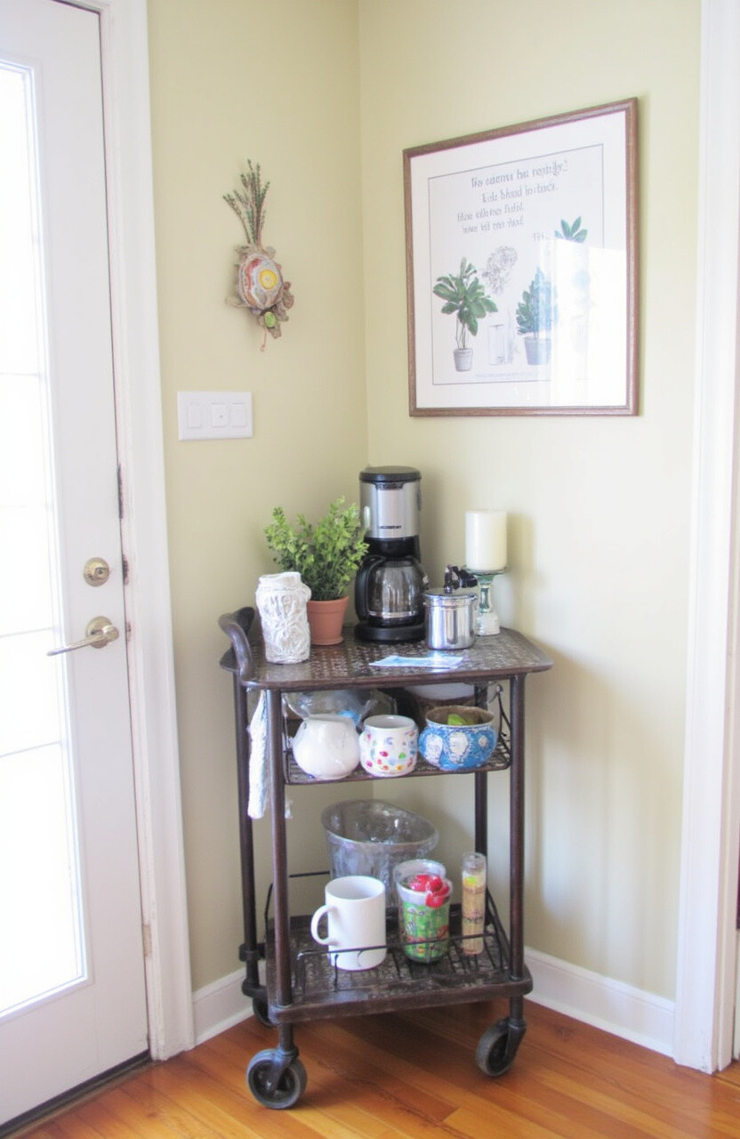 Create a charming coffee station in a corner with a small cart or table. Organize your coffee maker, mugs, and supplies for a cozy and inviting setup.