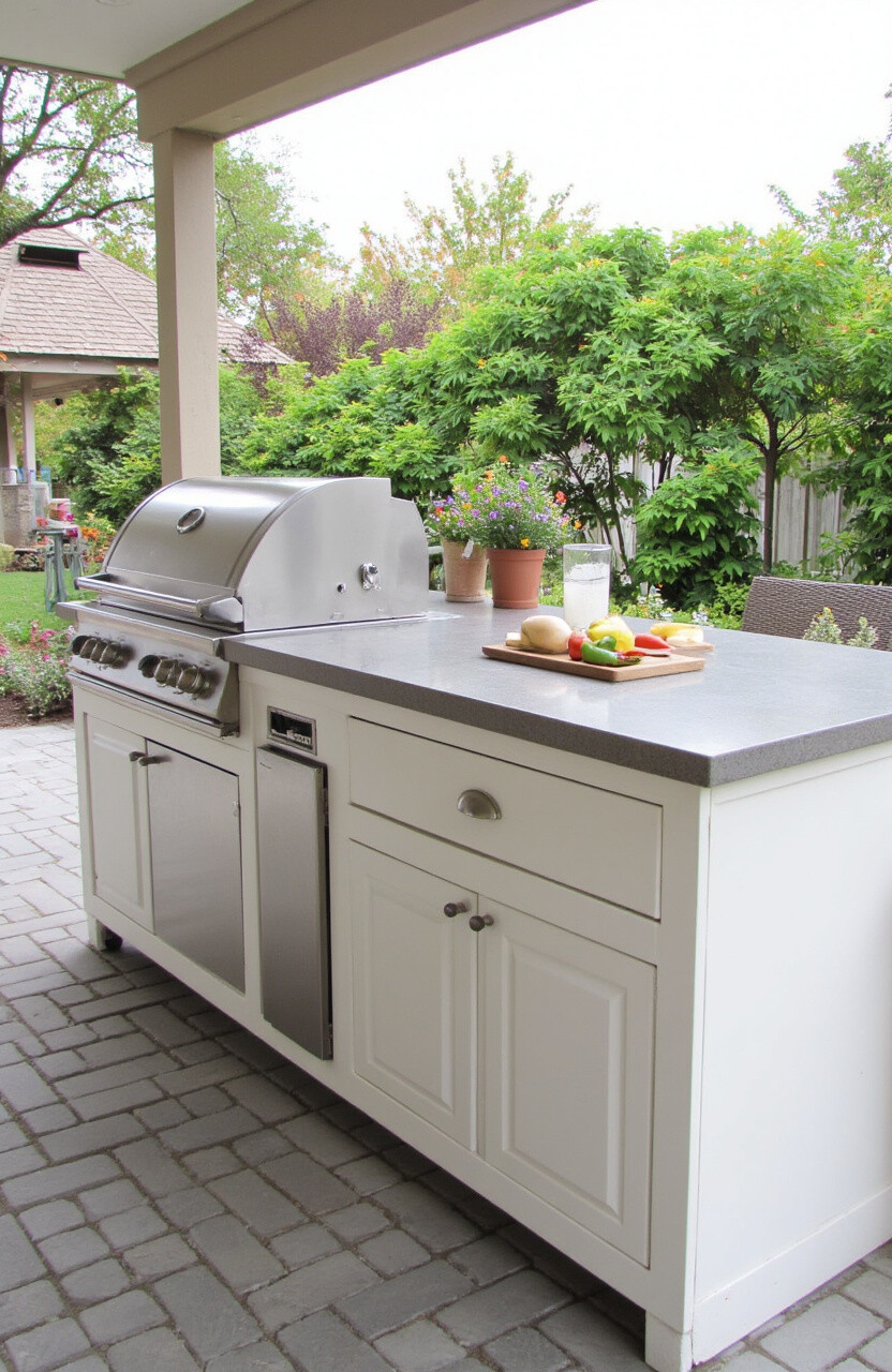 Choose a durable material like stainless steel or treated wood. It’s a practical addition that can handle the elements and provide you with extra workspace whenever needed.