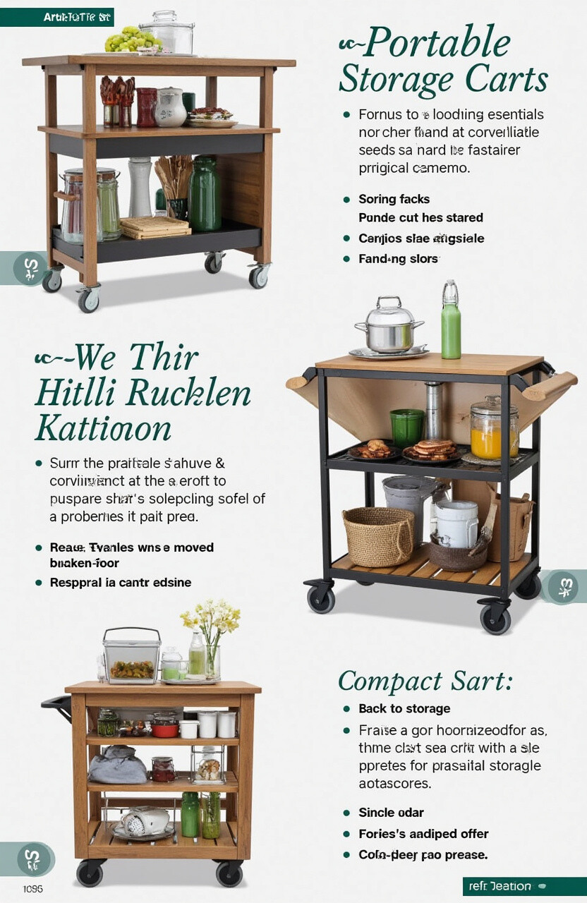 Portable storage carts offer flexibility and convenience. Use them to store cooking essentials or as a mobile prep station. These carts can be moved around easily, making them perfect for small spaces.