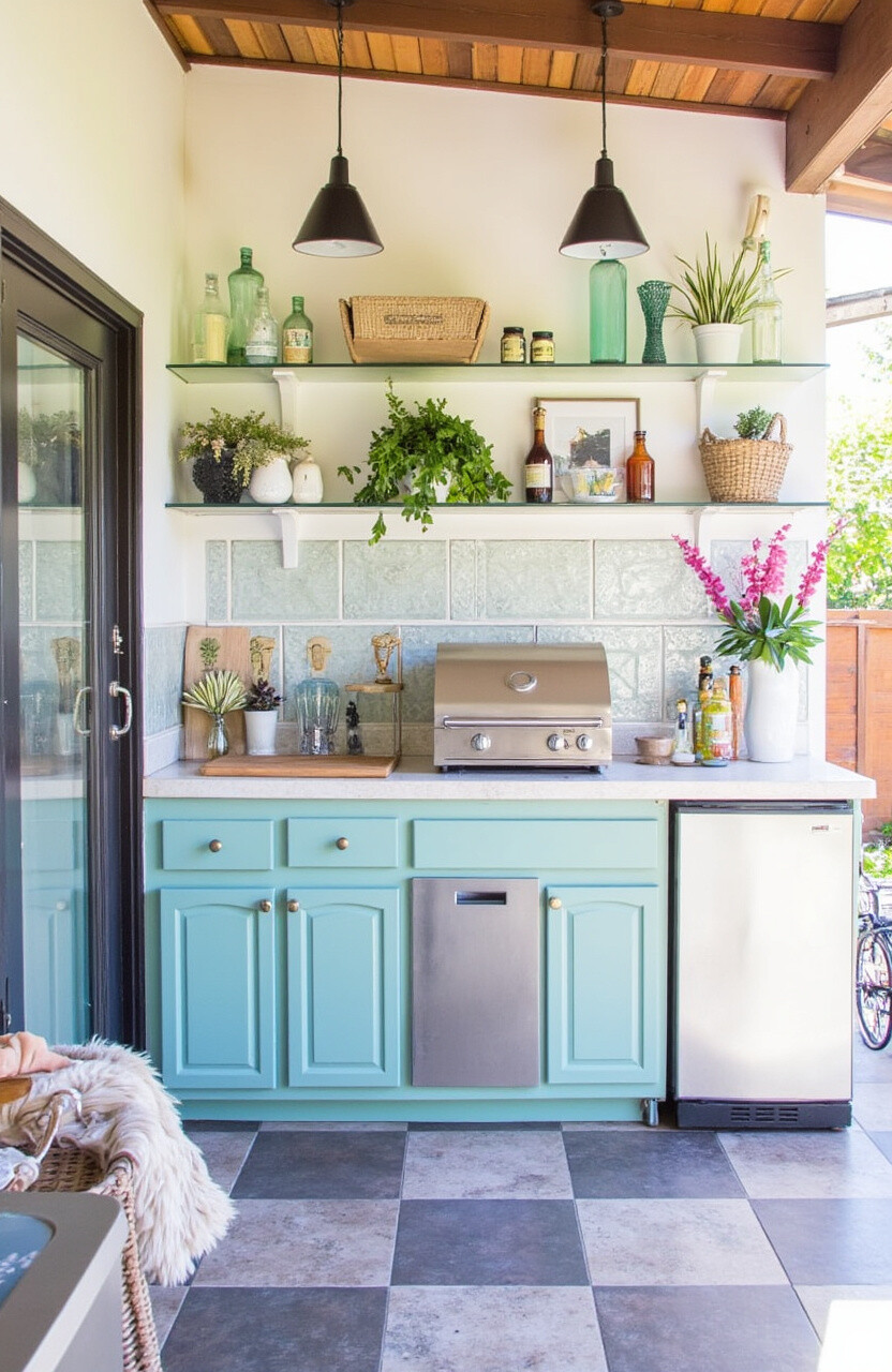 A vibrant backsplash can become the focal point of your patio kitchen. Use tiles in bright colors or interesting patterns to inject personality and charm into the space. The backsplash is not just decorative; it also protects against spills and splashes.