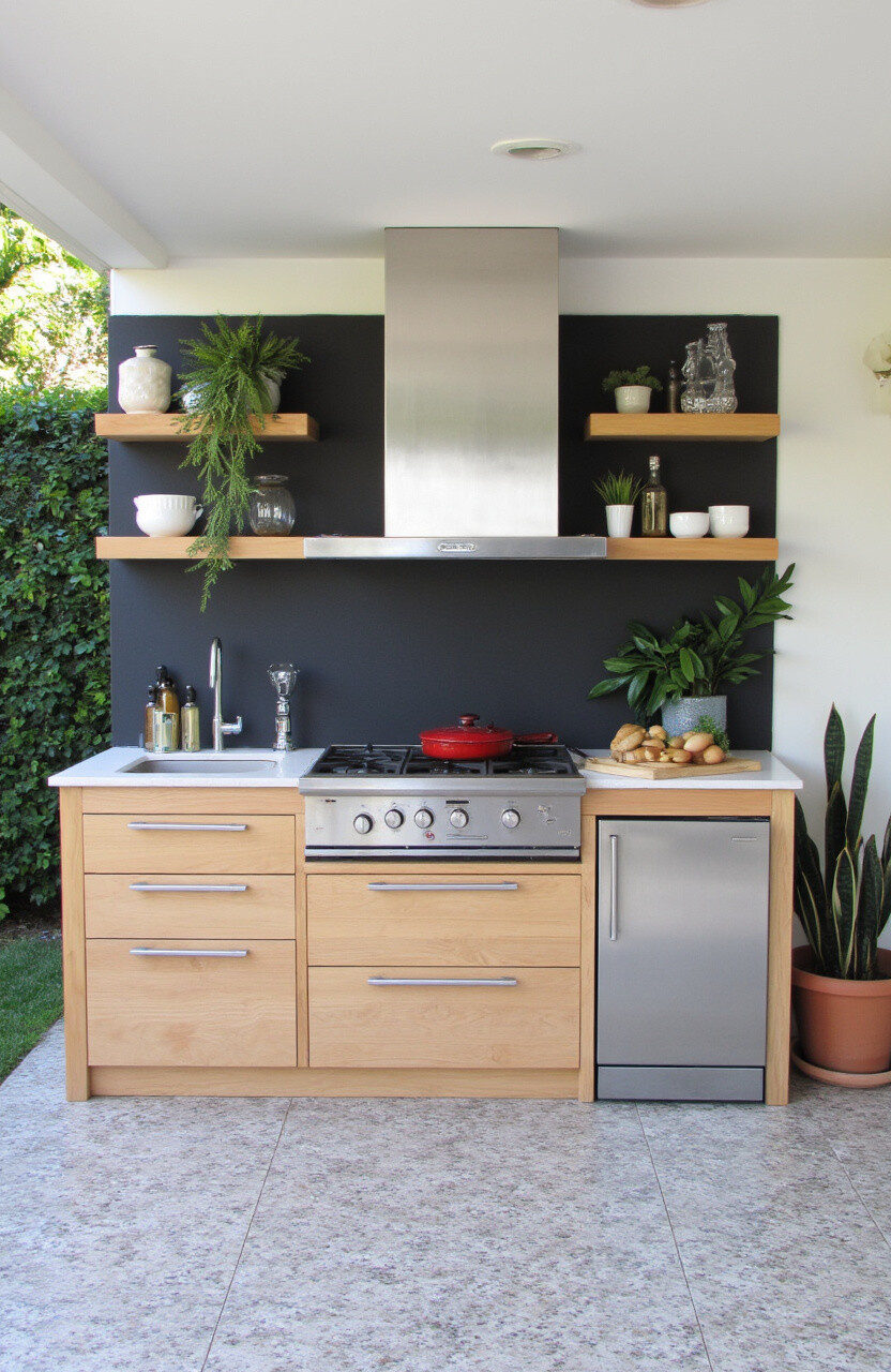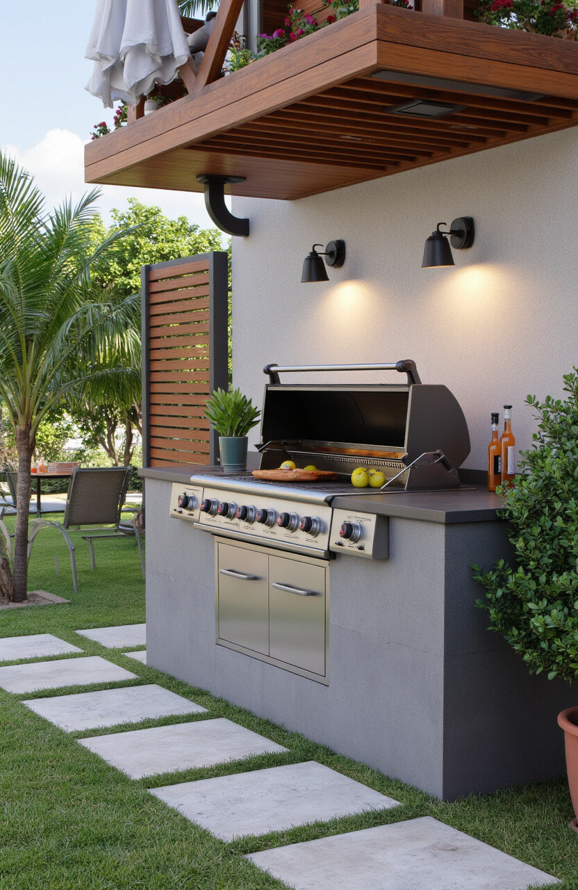 Invest in sleek, compact appliances that offer high functionality without taking up much space. Look for mini-fridges, compact ovens, or stovetops designed for outdoor use. These appliances ensure you can cook and entertain with ease.