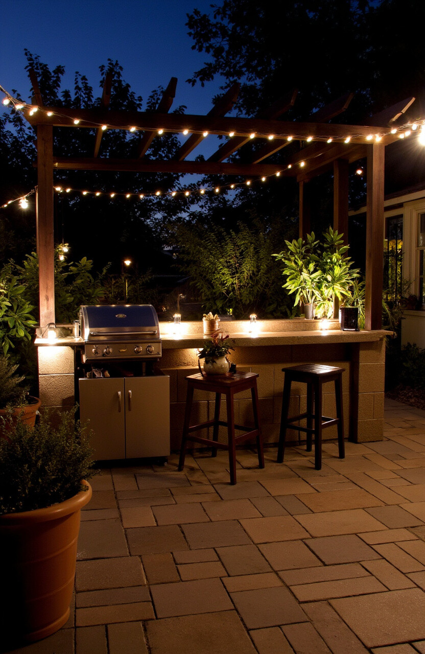 Illuminate your patio kitchen with enchanting outdoor lighting. String lights or lanterns create a cozy atmosphere and ensure your space is usable after dark. Lighting is not just functional but can also be a design statement.