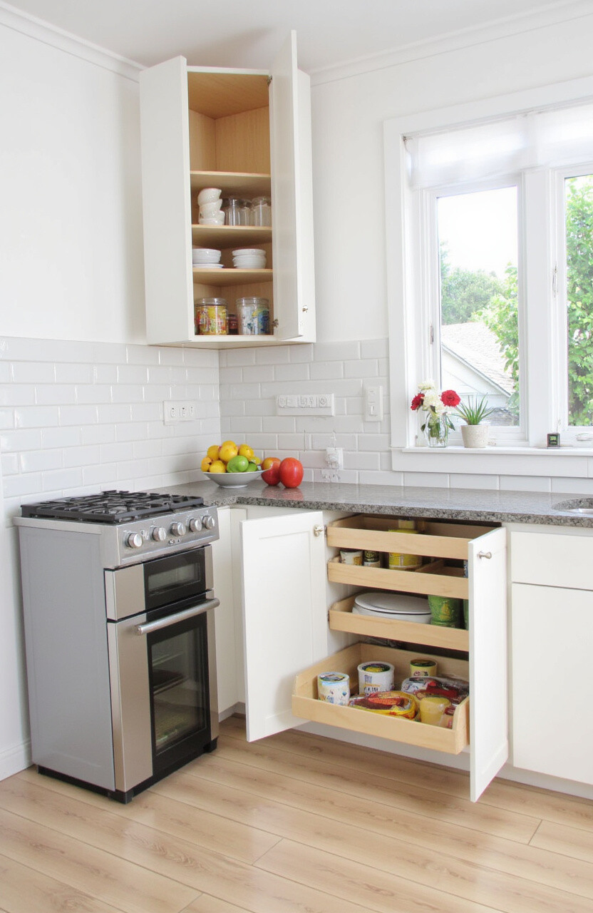 Maximize those tricky corner spaces with a lazy Susan. It makes accessing items in deep cabinets a breeze. No more digging around to find what you need!
