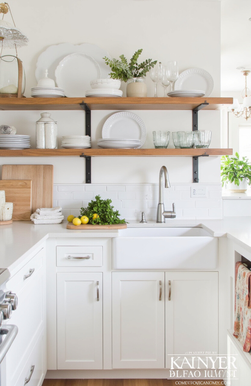 Open shelving creates an airy, spacious feel in any kitchen. It allows you to display your favorite dishes and glasses, adding personality to the room. Plus, it makes everything easily accessible.
