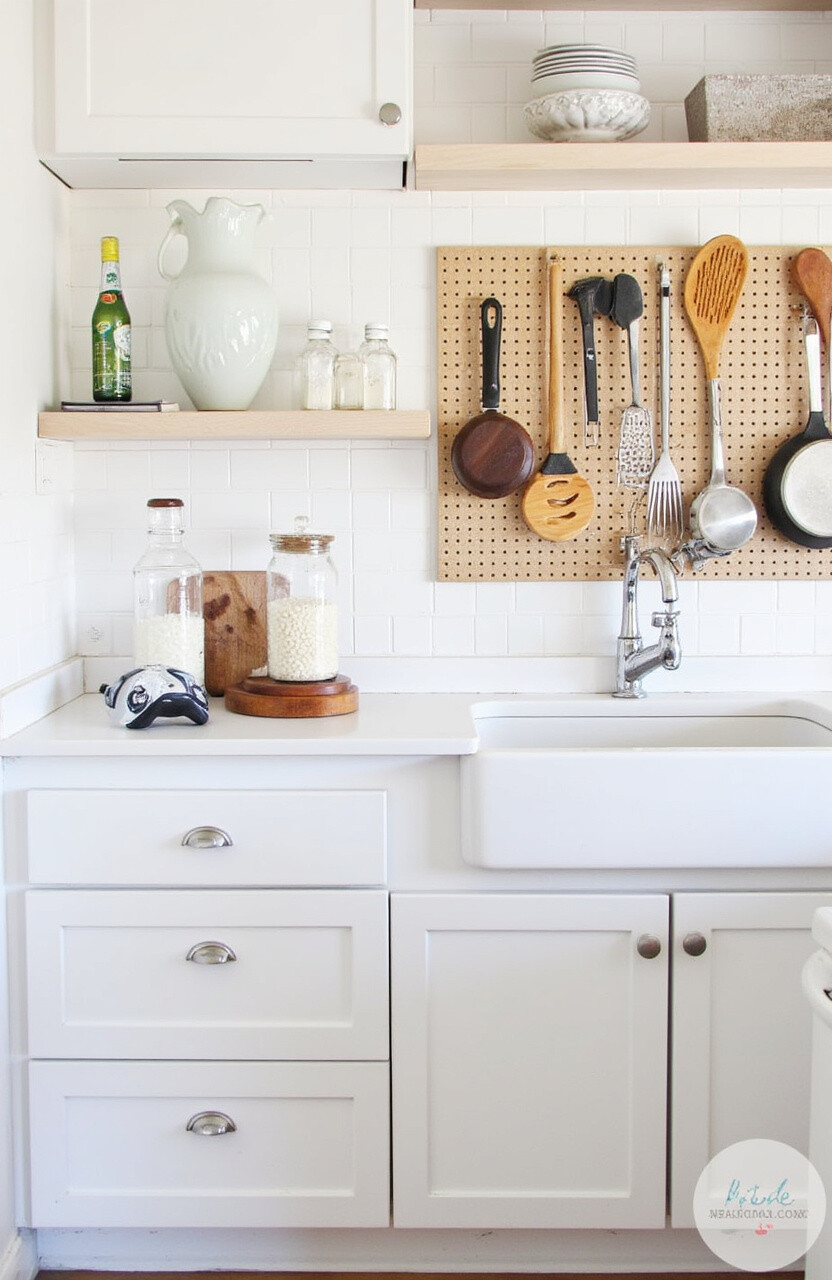 Pegboards are affordable, often costing as little as $15, and they offer endless customization options. It’s a fun and creative way to personalize your kitchen.