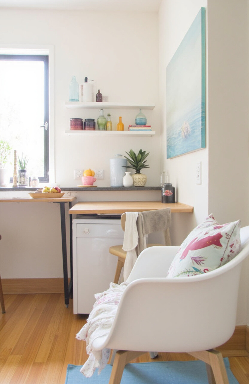 A fold-down table is a versatile addition to any small kitchen. It provides a dining area that disappears when not in use. Ideal for breakfast nooks or small apartments.
