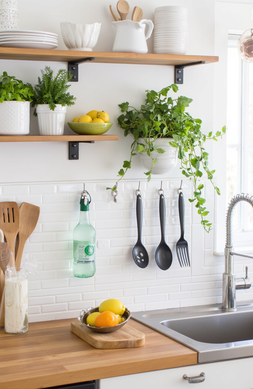 A multifunctional backsplash adds both style and storage. Use it to hang utensils, store spices, or even grow herbs. It’s a space-saving solution that looks great too.