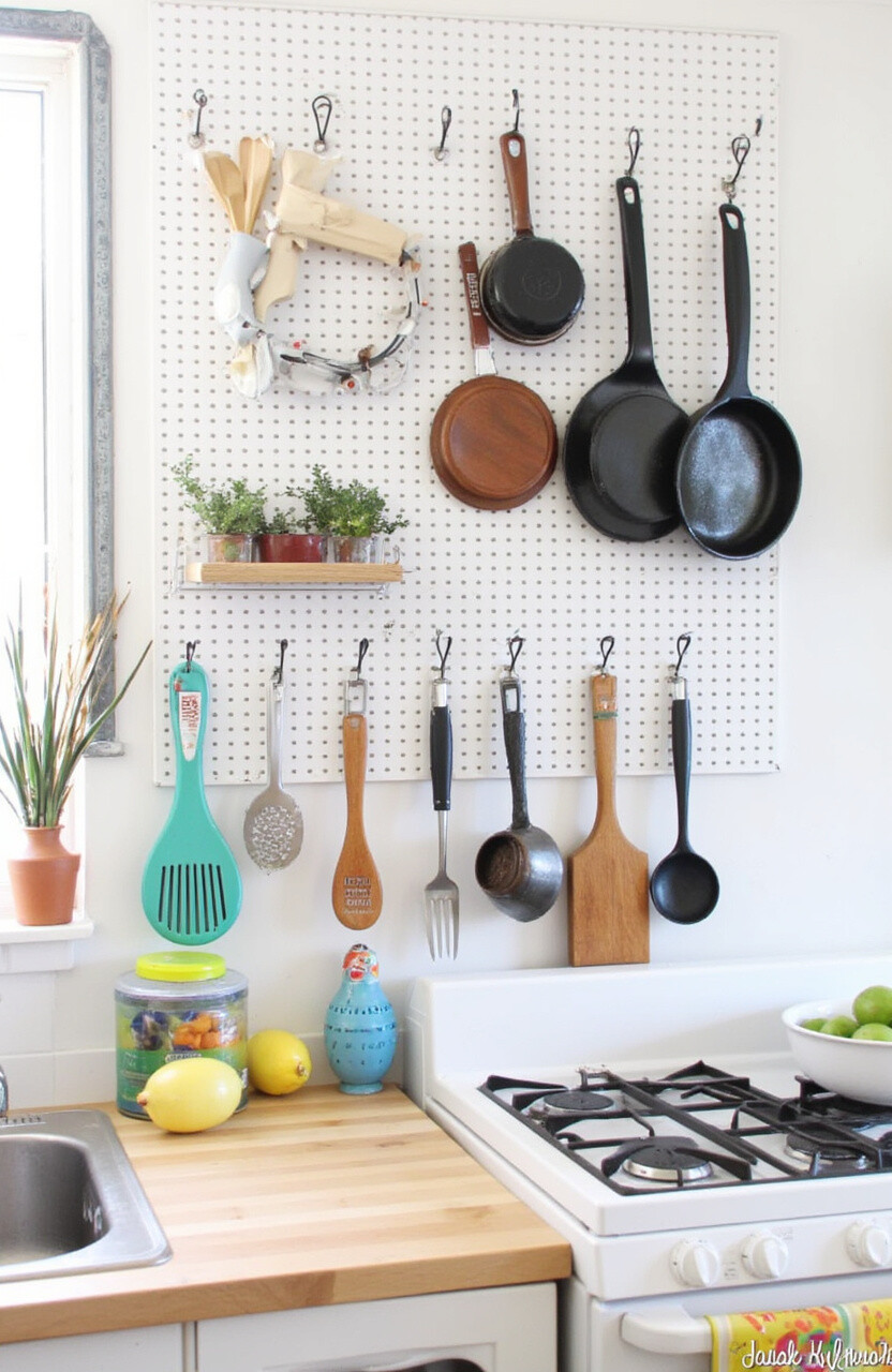 Pegboard wall storage offers customizable organization. Hang pots, pans, and utensils with ease, creating a functional display.