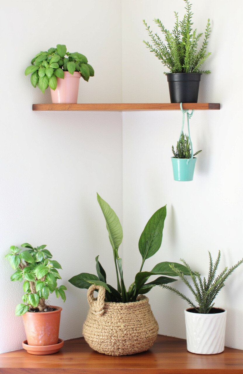 Add life to your nook with small potted plants. Herbs like basil or rosemary are perfect as they also serve a culinary purpose.