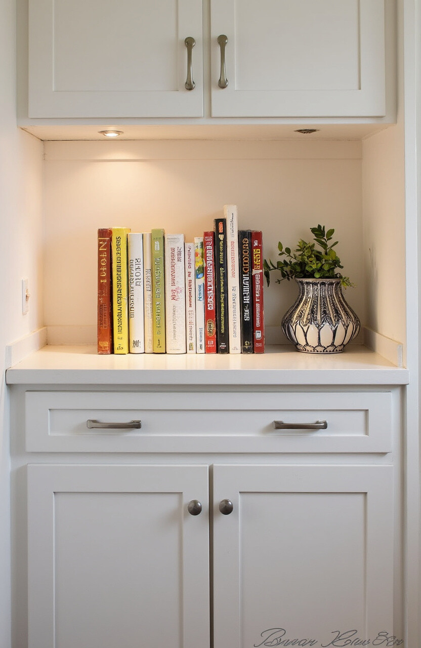 Brighten up your nook with under-cabinet lighting. LED strips or small spotlights highlight your collection and make it easier to read.