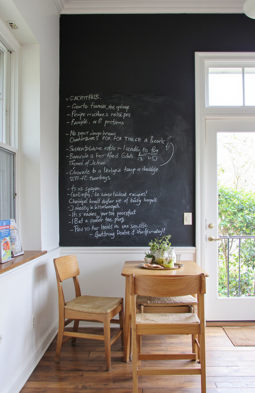 Install a chalkboard wall to jot down recipes, notes, or doodles. It adds a playful element to your nook and is perfect for quick reminders.