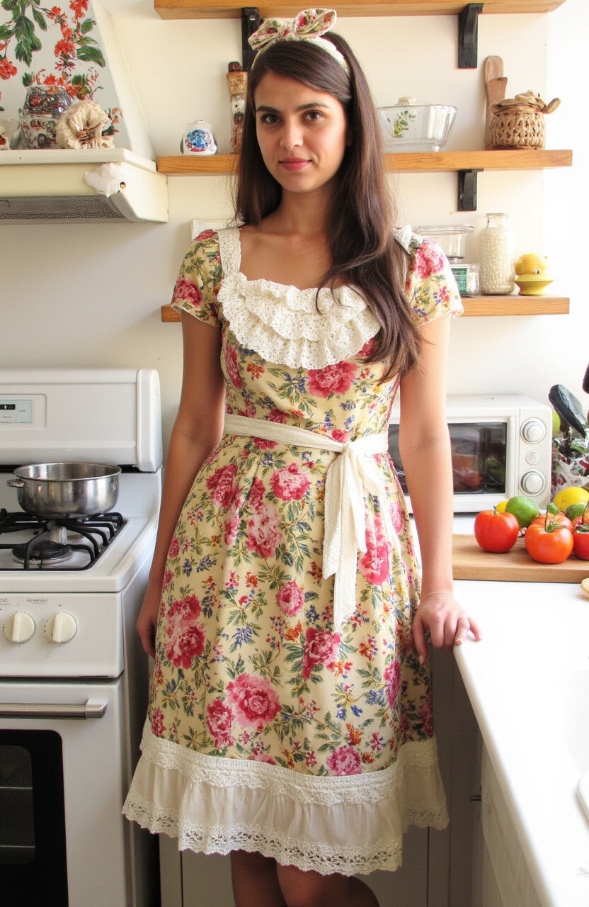Bring a touch of nostalgia to your cooking attire with a vintage dress. Think of floral patterns or lace details that remind you of your grandmother’s kitchen. Pair it with a matching headband for an extra dash of charm.