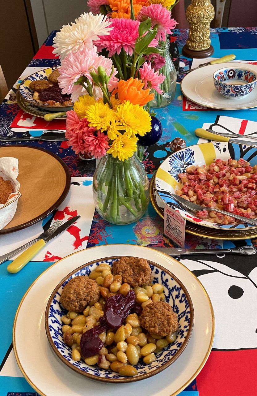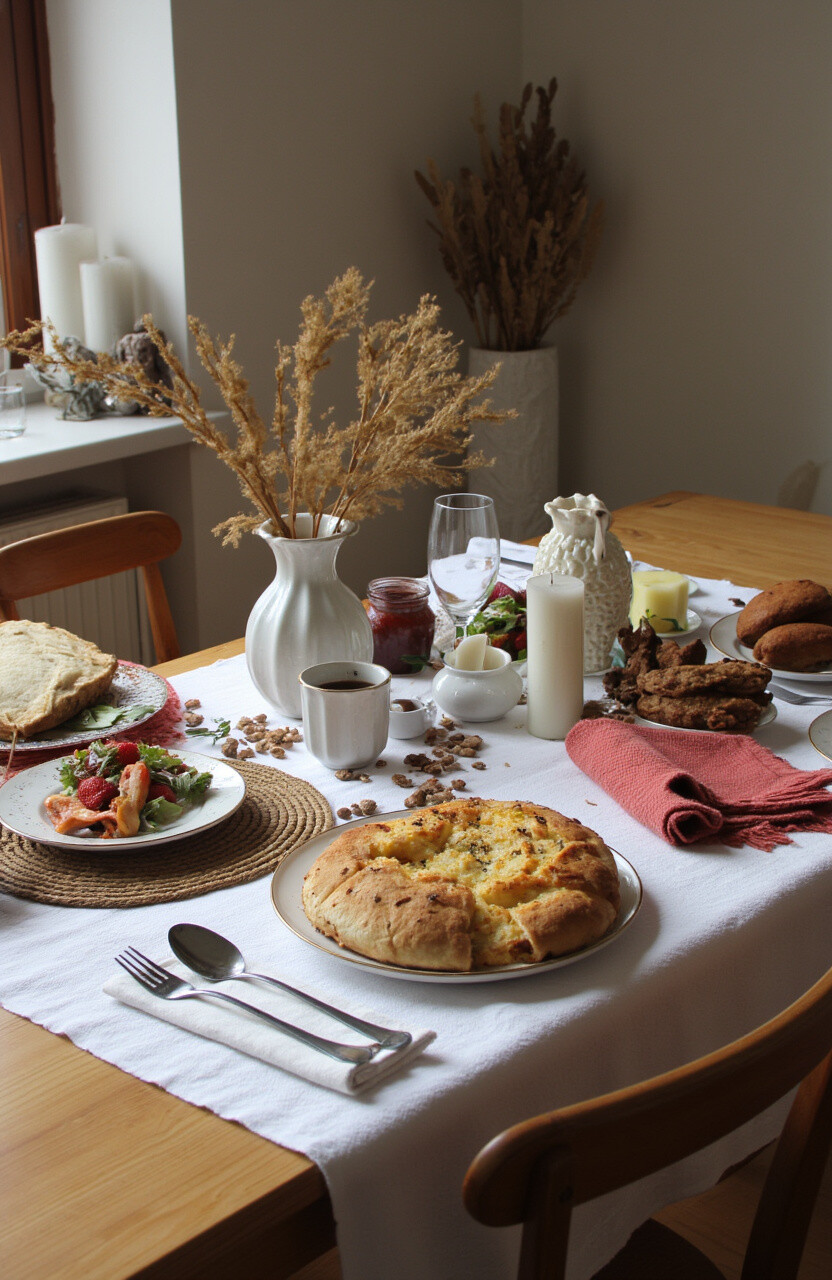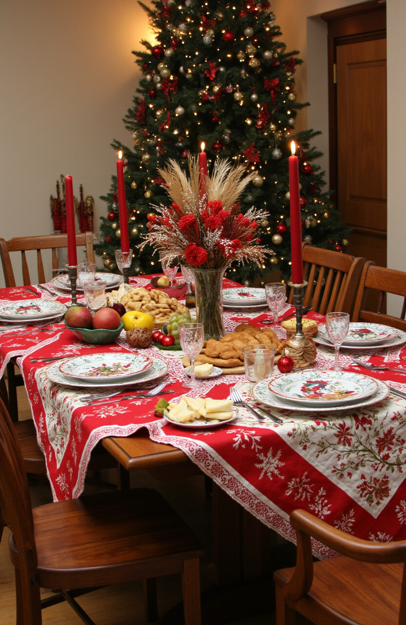 Celebrate the holidays with a traditional festive table. Use classic colors, seasonal decor, and nostalgic elements. It’s perfect for family gatherings and holiday feasts.