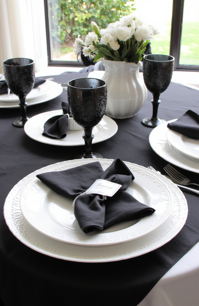 Classic yet contemporary, a black and white theme is timeless. Use contrasting elements for a striking effect. This setup is perfect for formal dinners or chic events.