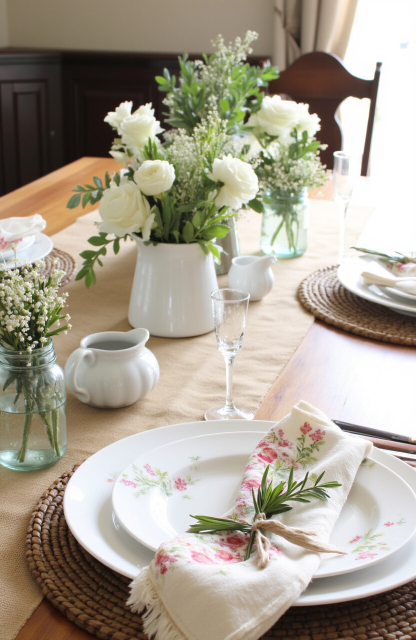 Embrace the charm of the countryside with a rustic farmhouse table setting. Think vintage plates, mason jars, and burlap runners. This theme brings warmth and coziness, making every meal feel like a Sunday brunch.
