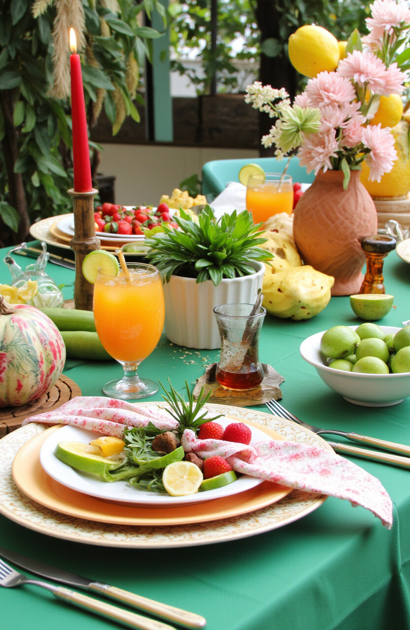 Spice up your table with a festive fiesta theme. Use vibrant colors, Mexican textiles, and playful patterns. It’s perfect for lively gatherings and celebrations.