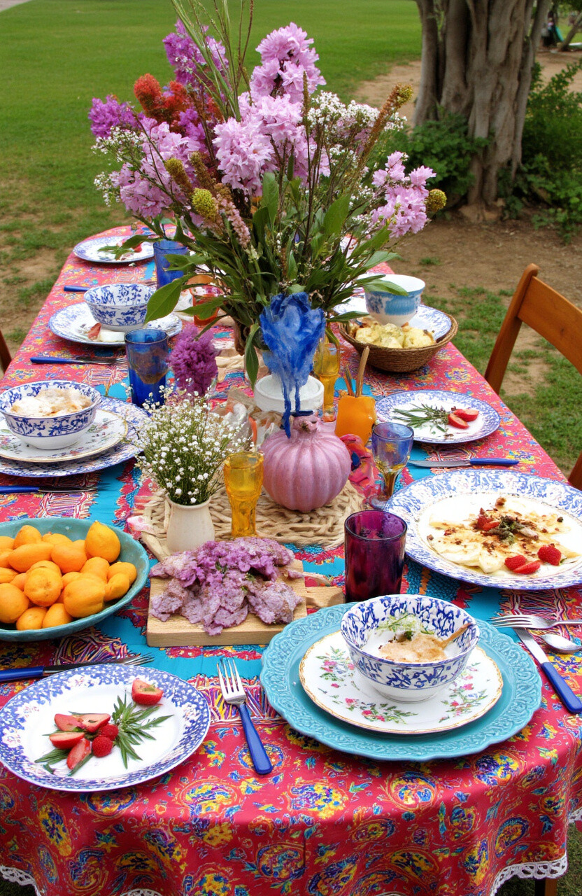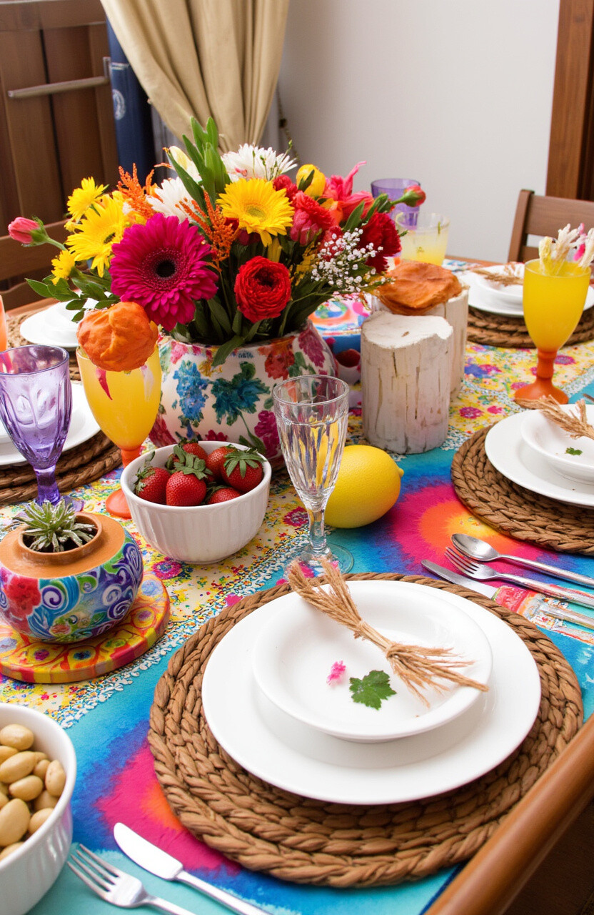 Infuse your table with a burst of colors and eclectic patterns. Bohemian style is all about freedom and creativity, with mismatched plates and colorful textiles. It’s perfect for those who love a relaxed, fun atmosphere.