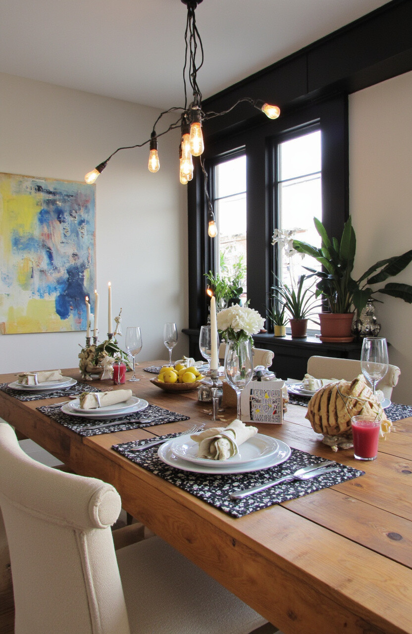 Let your table be a canvas with an artistic expression theme. Use bold colors, abstract patterns, and creative arrangements. It’s for those who love to make a statement.