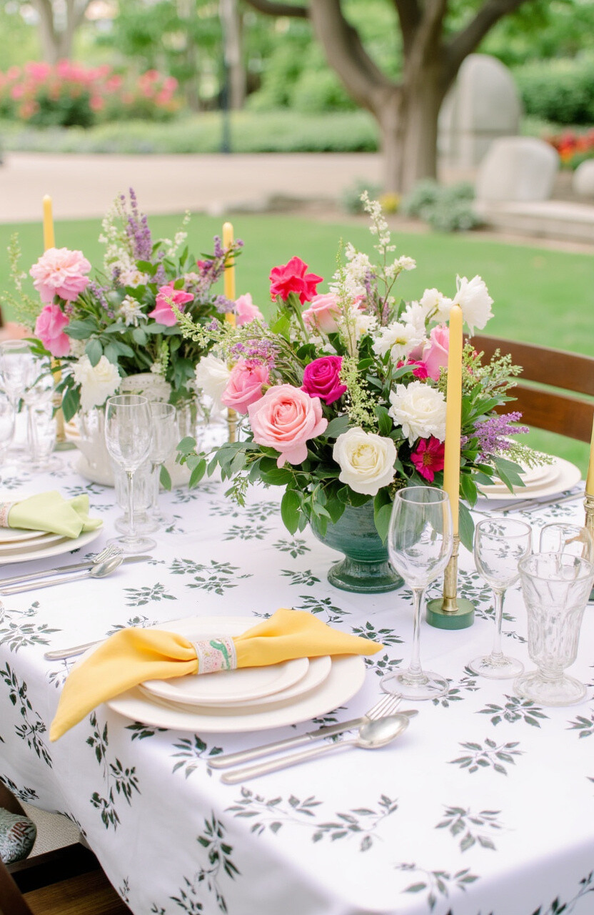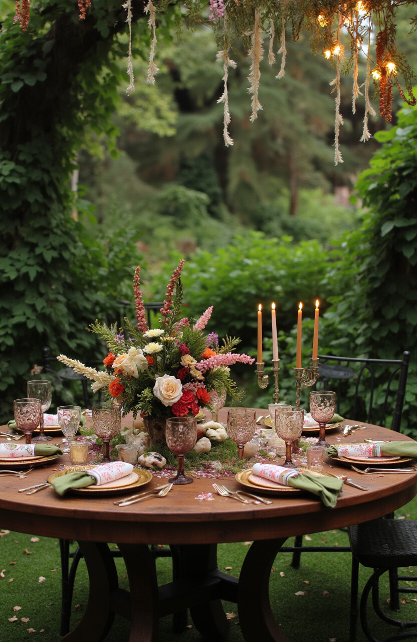 Turn your table into a blooming garden with floral arrangements and botanical prints. This style is ideal for spring and summer events, creating a fresh and lively ambiance.
