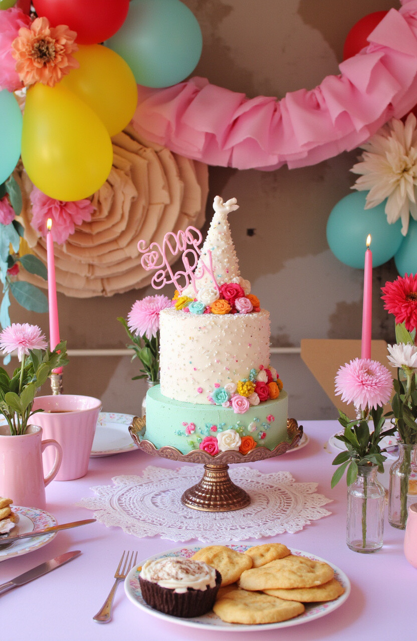 Step back in time with a vintage tea party theme. Use dainty teacups, lace tablecloths, and pastel colors. It’s perfect for afternoon teas or special celebrations.