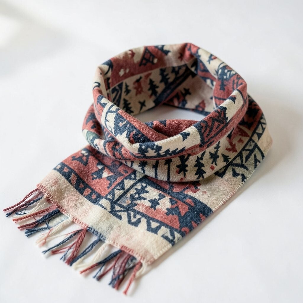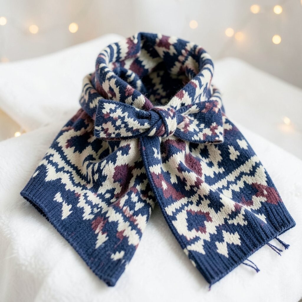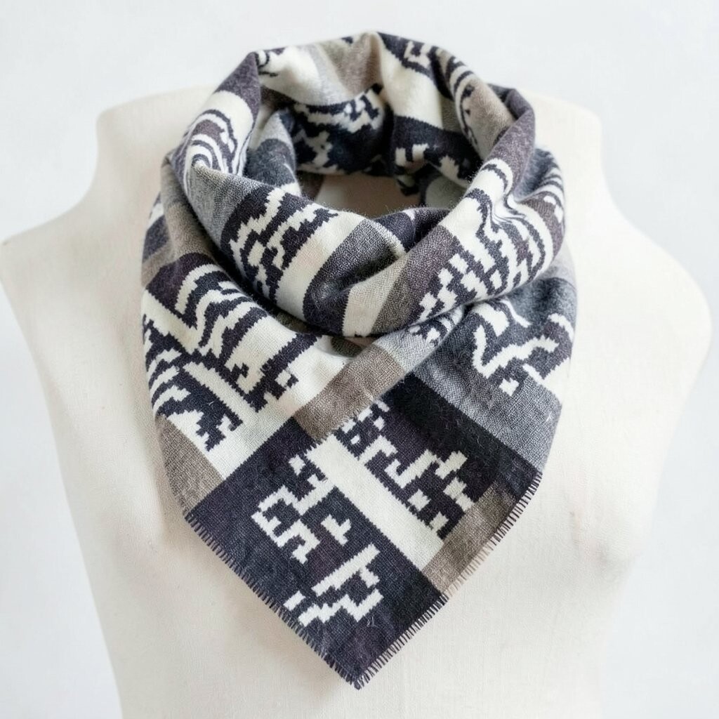 The geometric patterns add a creative touch. It’s perfect for a fancy dinner or a special occasion. Plus, it keeps your neck warm!