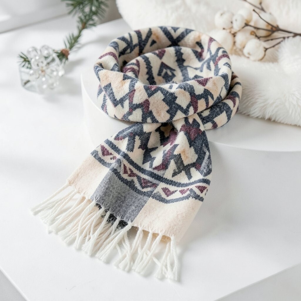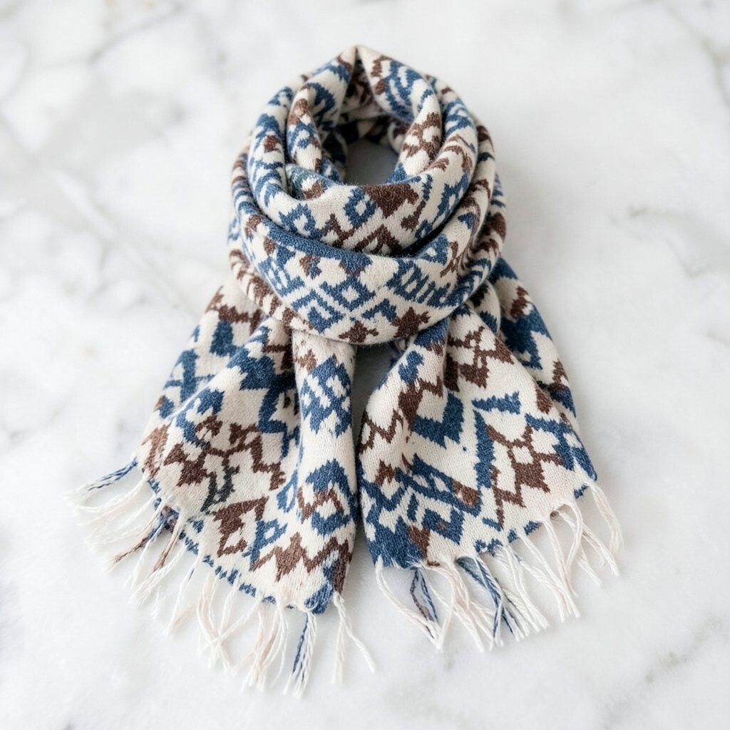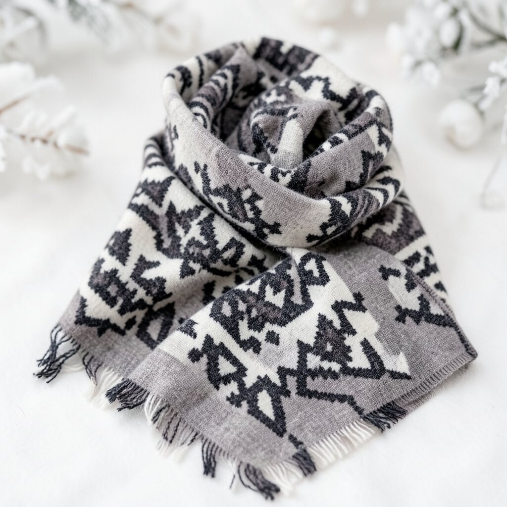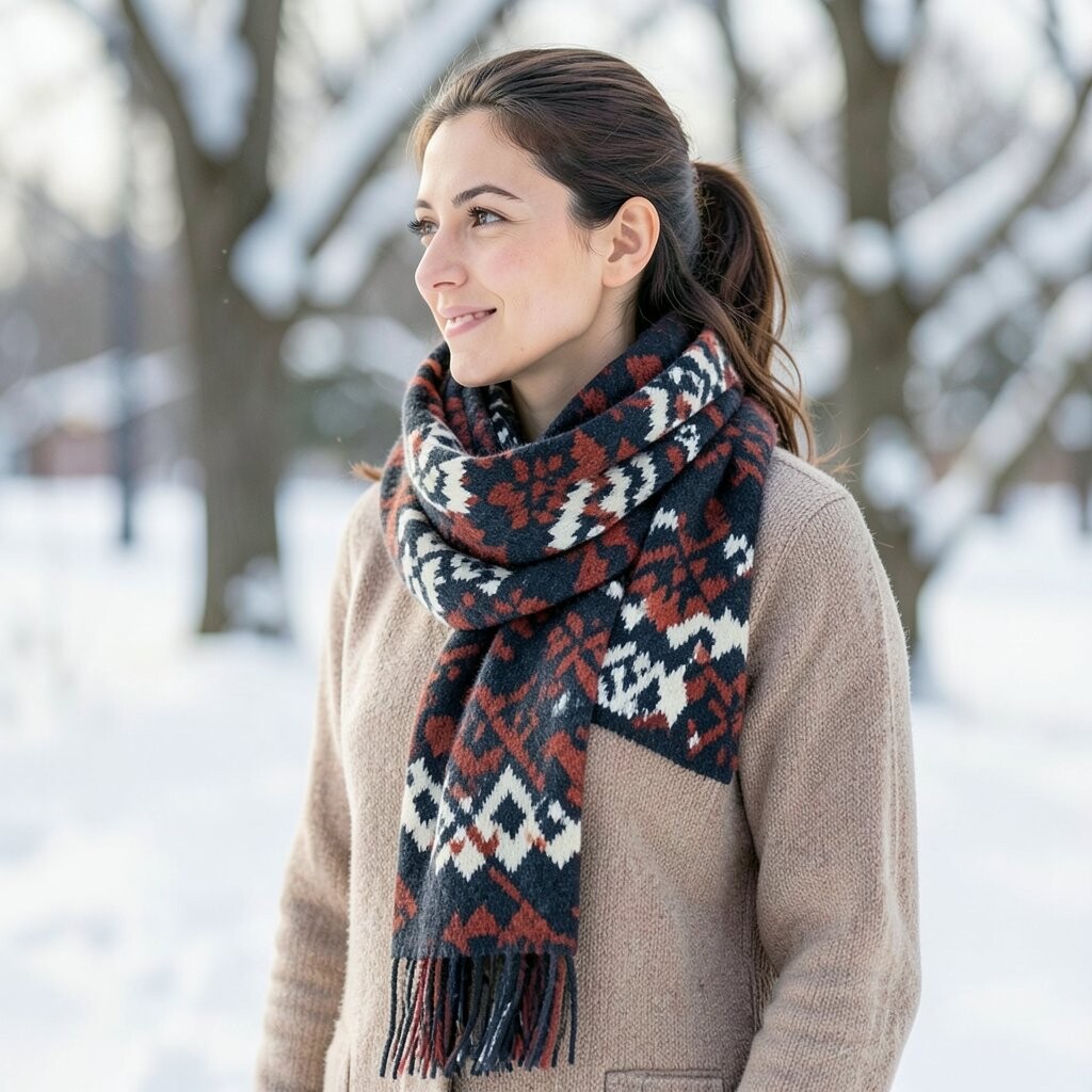 The geometric patterns add a touch of sophistication. It’s great for both casual and formal winter outfits. Pair it with a nice coat, and you’re good to go!